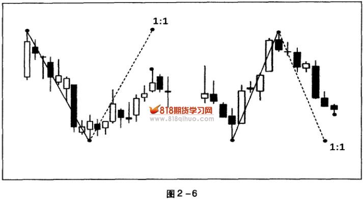 在实际走势中,是否真的需要画出1:1线来进行分析?其实根本不需要,因为多数行情是低于对称角度波动,还是高于对称角度波动,在K线走势图中看起来非常明显,一眼就能看得出来。