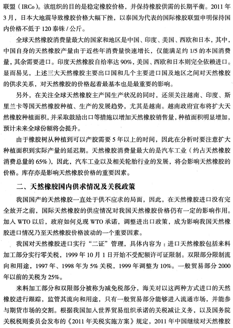 第三节 天然橡胶价格影响因素、合约及交割仓库
