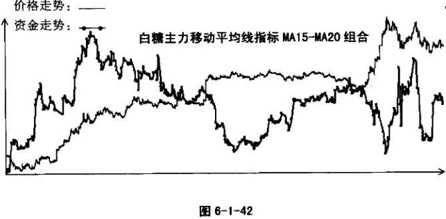 由表6-1-7可以看到,对于白糖日内交易,MA10和MA15双移动平均线组合交易表现最好。总盈利率达到100%以上排名第一、胜率和平均每次盈利都是最高的,表明该双均线组合以较多的盈利次数获得较高的盈利额:且最大 盈利率排名第一、最大亏损率排名倒数第二,表明其在最大单次盈利较大的同时单次最大亏损却相对较低,不会单次亏损过度集中而导致补仓甚至爆仓风险:日均交易次数排名第三,将近每日4.75次,这个数字对于期货日内双向交易来说是比较适中的。