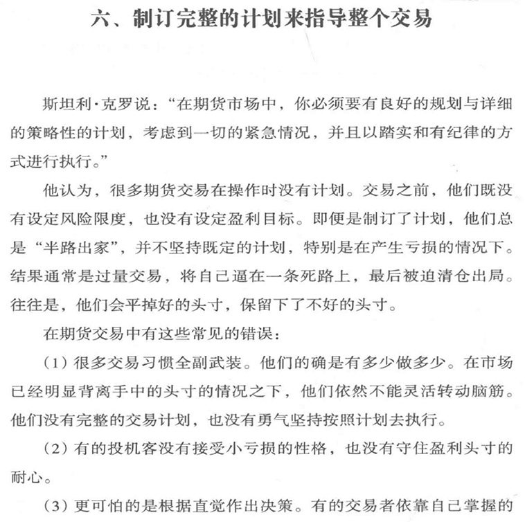 六、制订完整的计划来指导整个交易