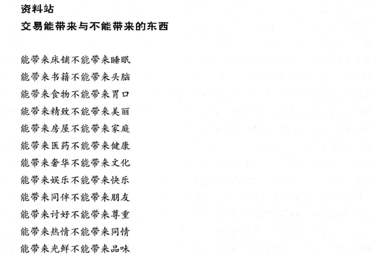 资料站:交易能带来与不能带来的东西