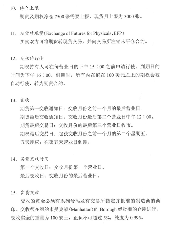 纽约商业交易所(NYMEX)COMEX黄金期货及期权市场(2)